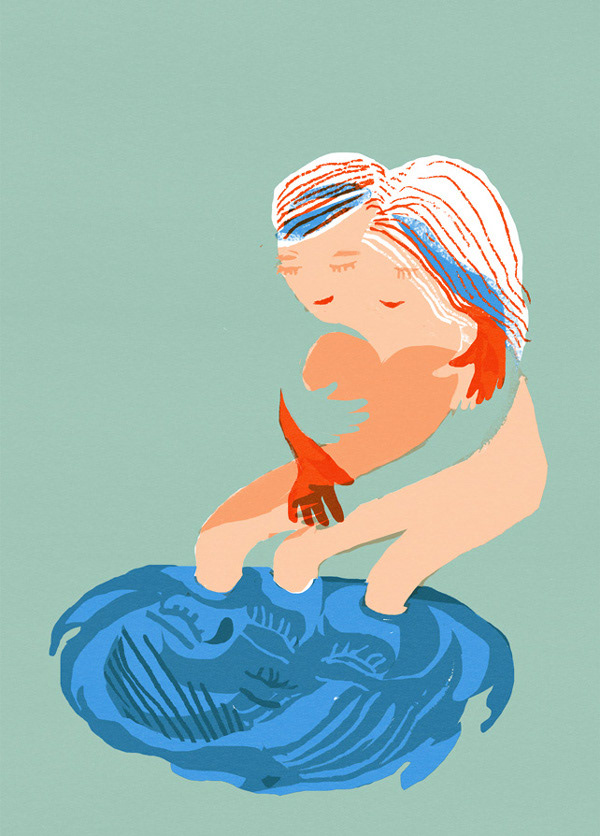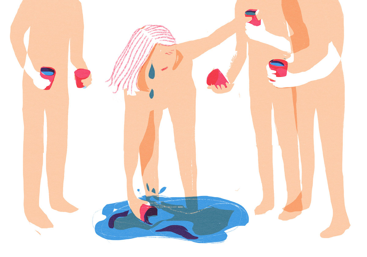 Illustraties bij een artikel over het verlies van een ongeboren kind, het delen van het verdiet, verdriet dat je opeens overvalt en het nader tot elkaar komen door verdriet.
