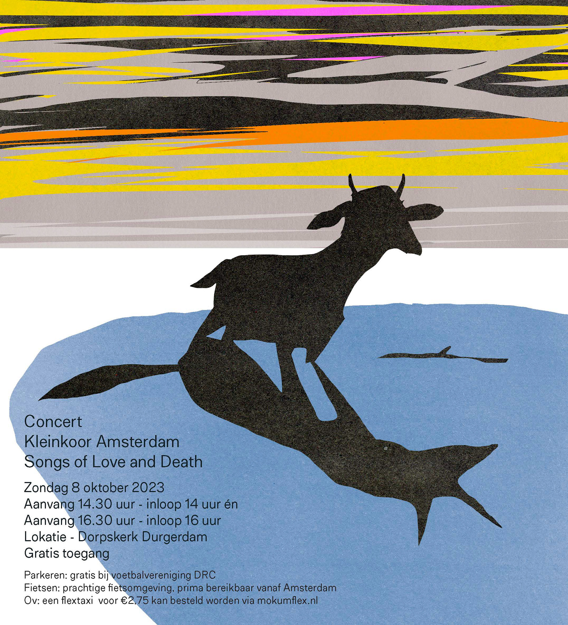 Concert aankondiging Kleinkoor Amsterdam en Ligamenten.
