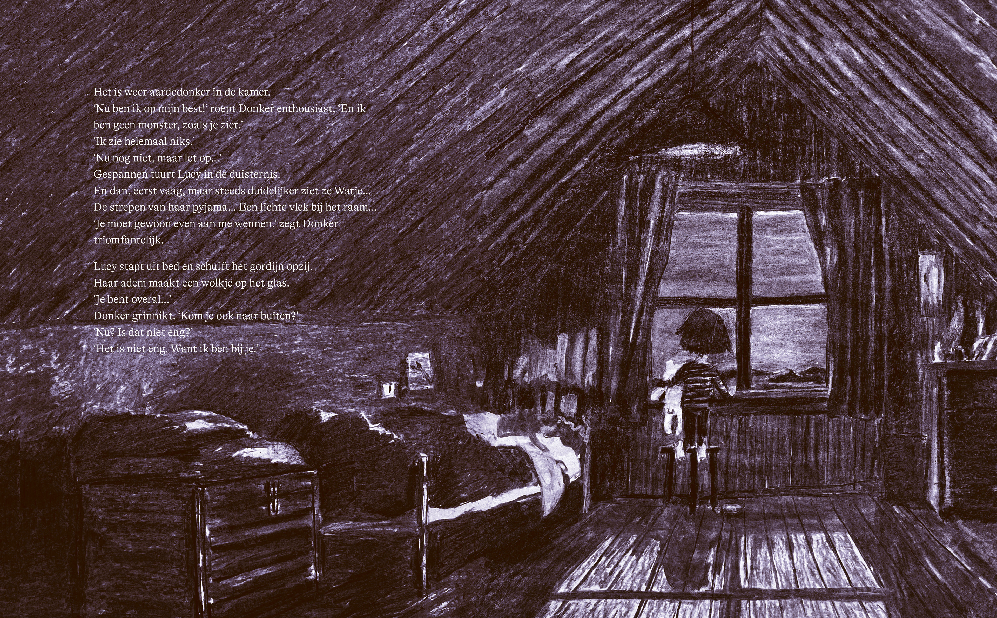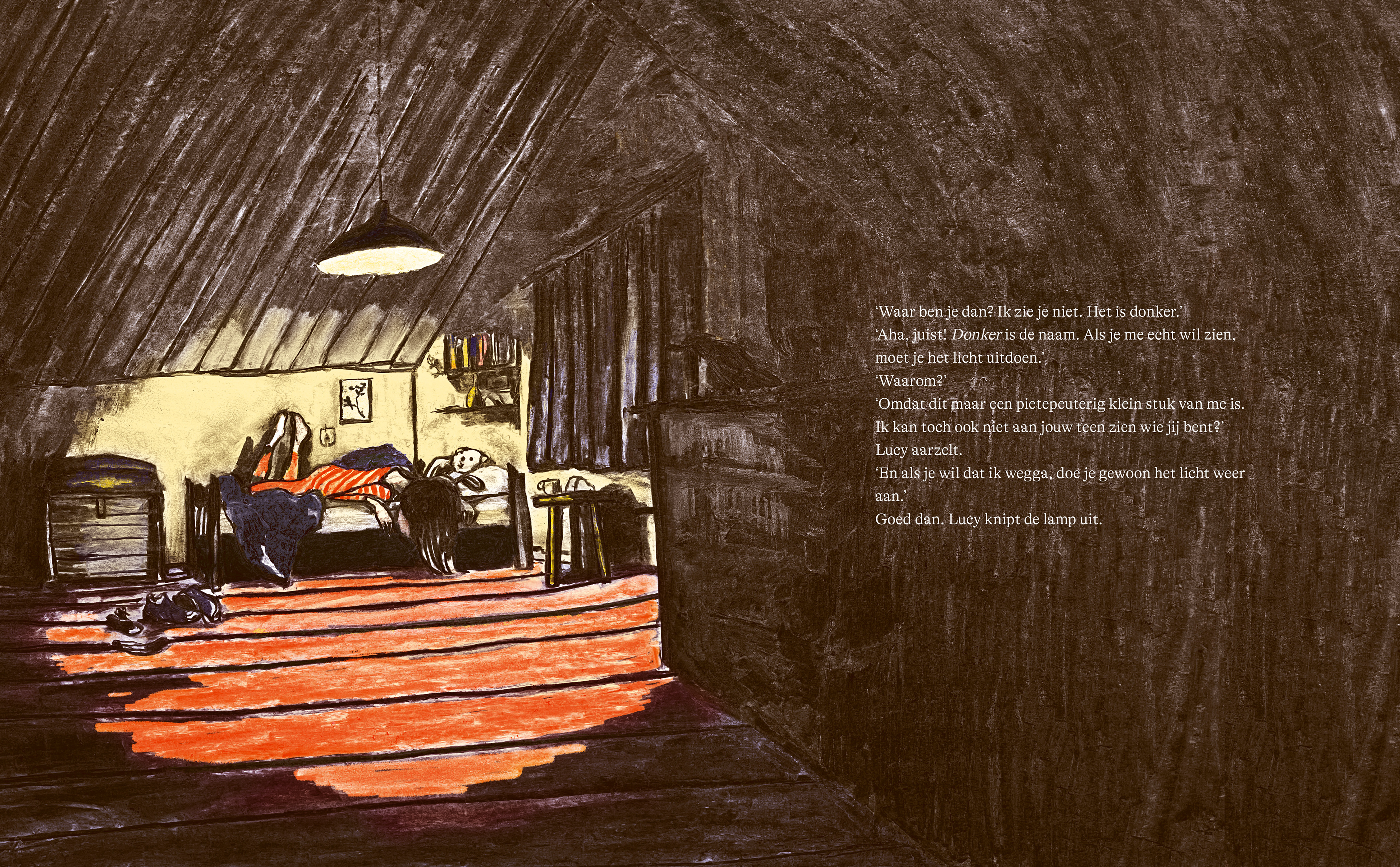Lucy ligt wakker in bed. Alles om haar heen wacht roerloos op de ochtend. Maar dat verandert als ze Donker onder haar bed vindt.