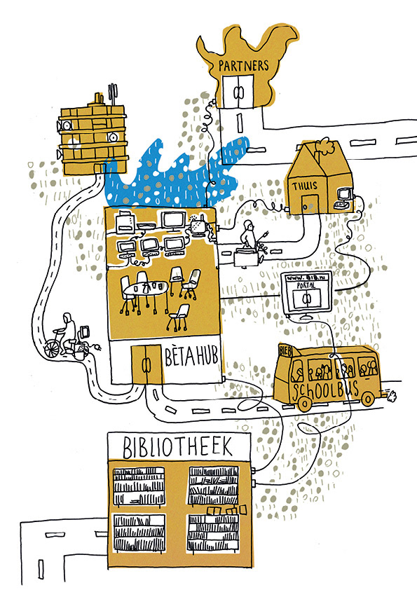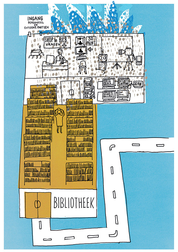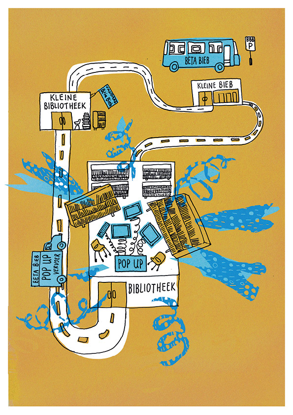 Opdrachtgever Probiblio - illustraties over de digitalisering van de bibliotheek. I.s.m. ontwerpbureau Erikenik.
