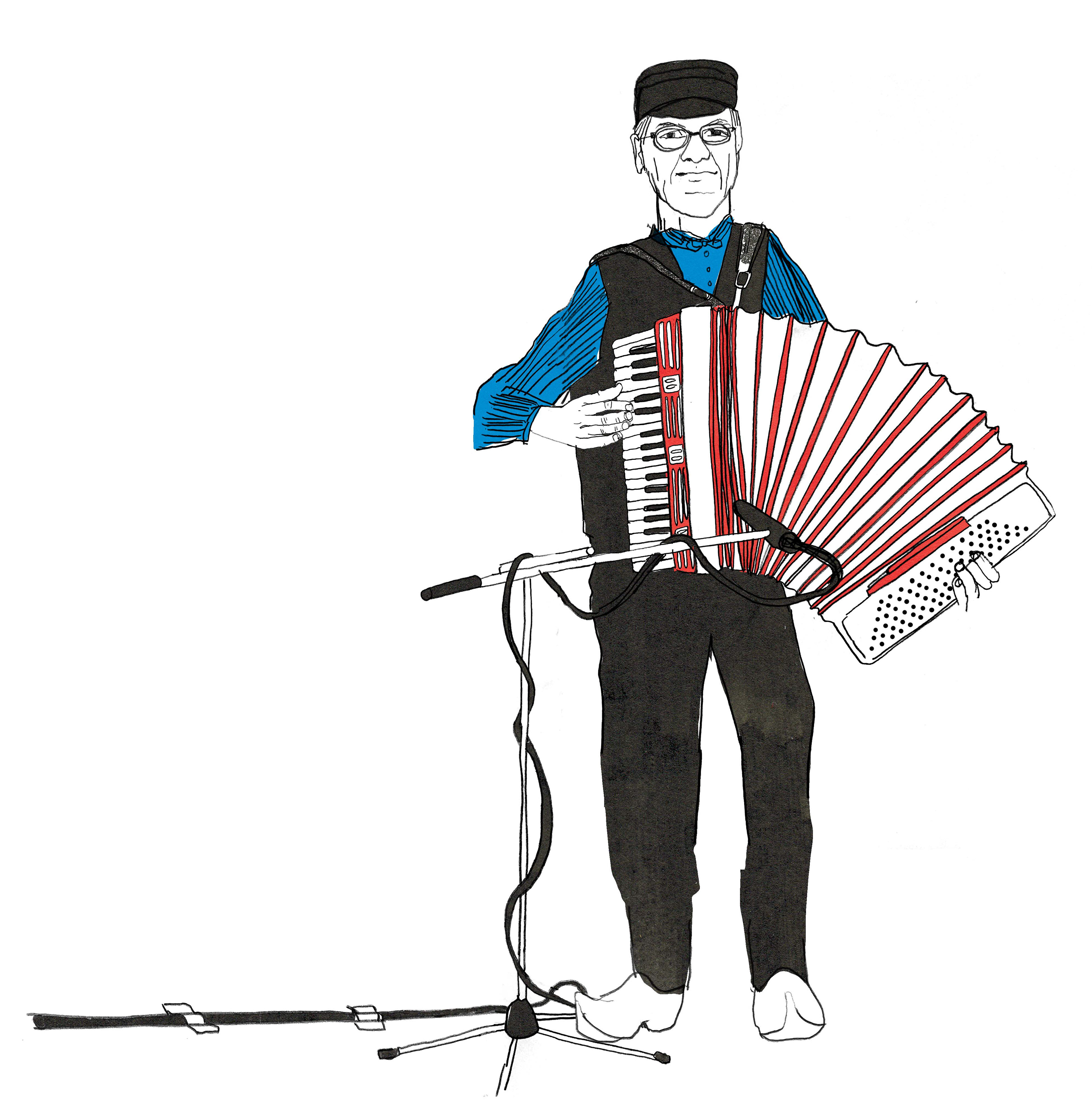 Een artikel over het conserveren en beoefenen van folklore in het heden. Door het toevoegen van een enkel hedendaags ding zoals raamkozijnen of een microfoonstandaard zijn het ondanks de klederdracht figuren van nu.