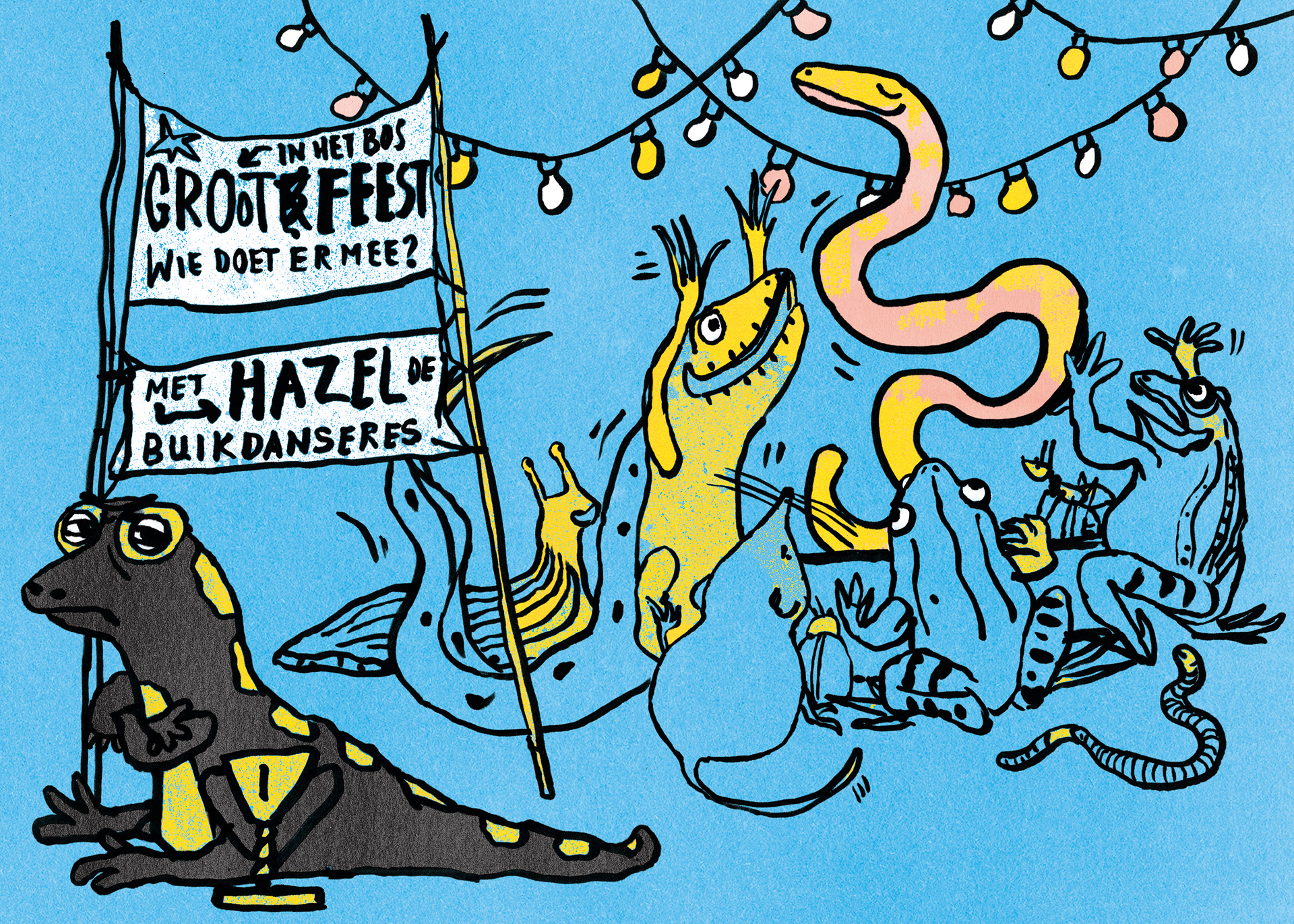 Tijgerslezen is een bundel met avonturen van geweldige hoofdpersonages uit de Tijgerlezenreeks van Querido. Voor deze bundel maakte Simon van der Geest en ik een kort verhaal over een nieuw karakter Hazel de hazelworm. Hazel, de zandhagedis en de vuursalamander doen een hardloopwedstrijd. De wedstrijd eindigt in chaos, want Hazel struikelt over haar eigen staart. Hardlopen is niet haar sterkste kant, maar ze blijkt wel een heel ander talent te hebben...